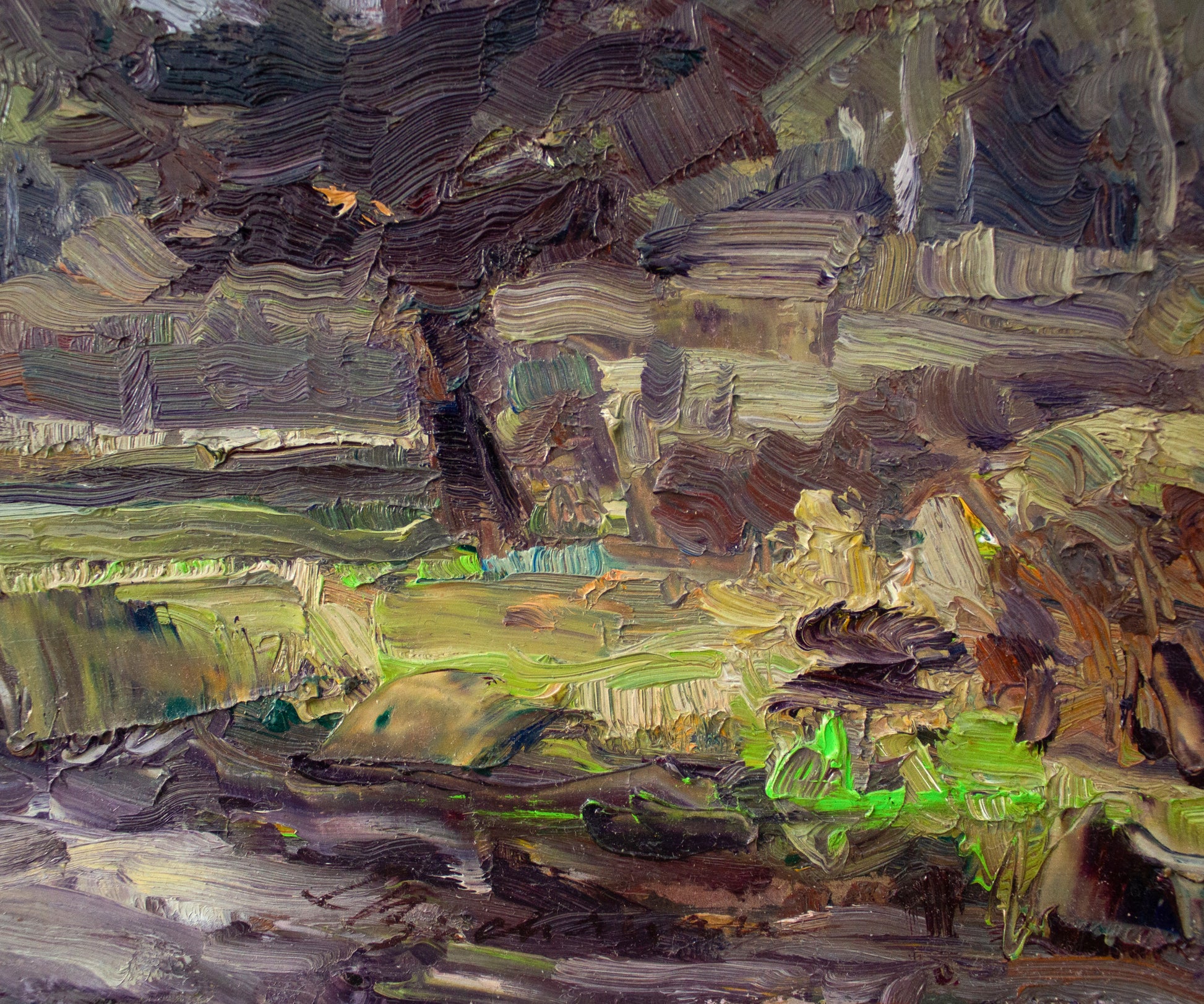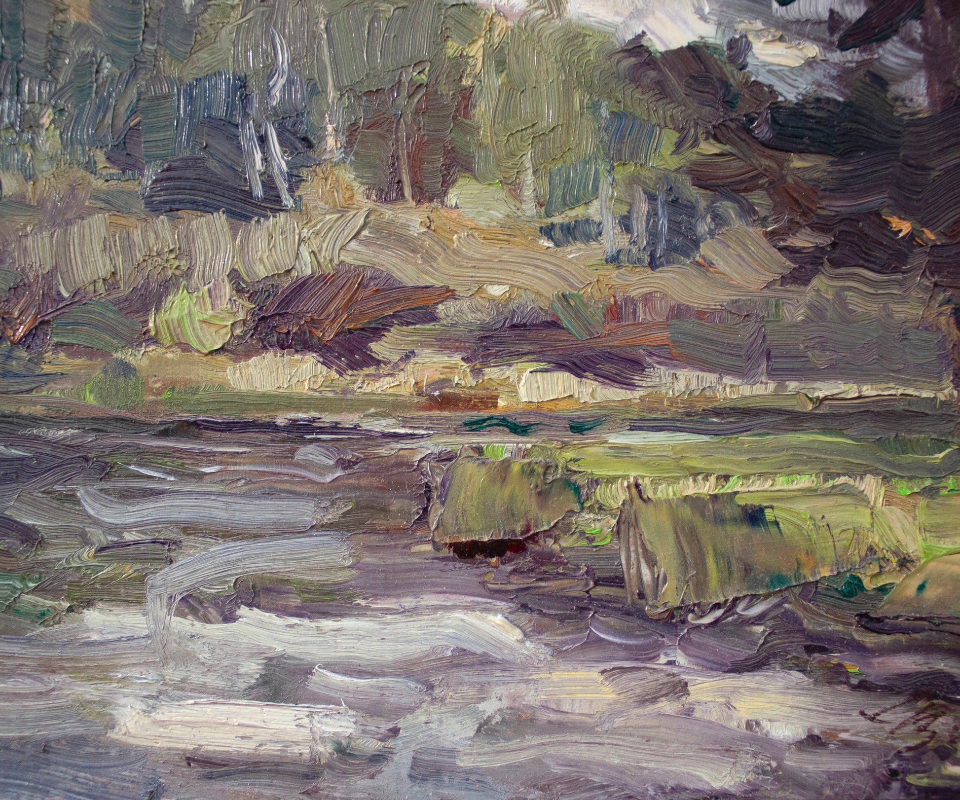 This is a plein air work which I painted on the banks of the Deschutes River near Bend, Oregon, during a summer rainstorm.