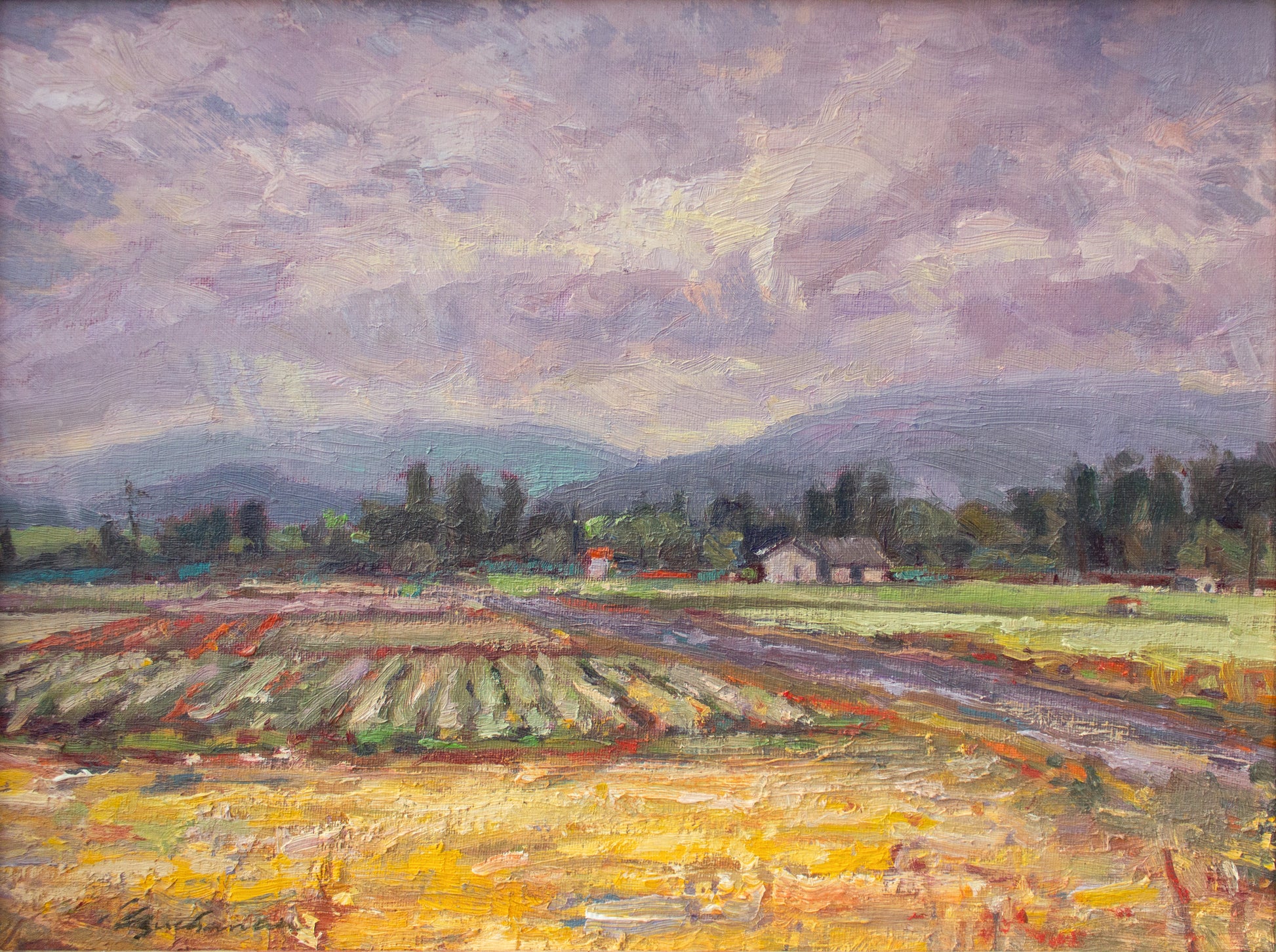 I painted this piece en plein air (in the open air) behind Garland Nursery, just north of Corvallis, Oregon.
