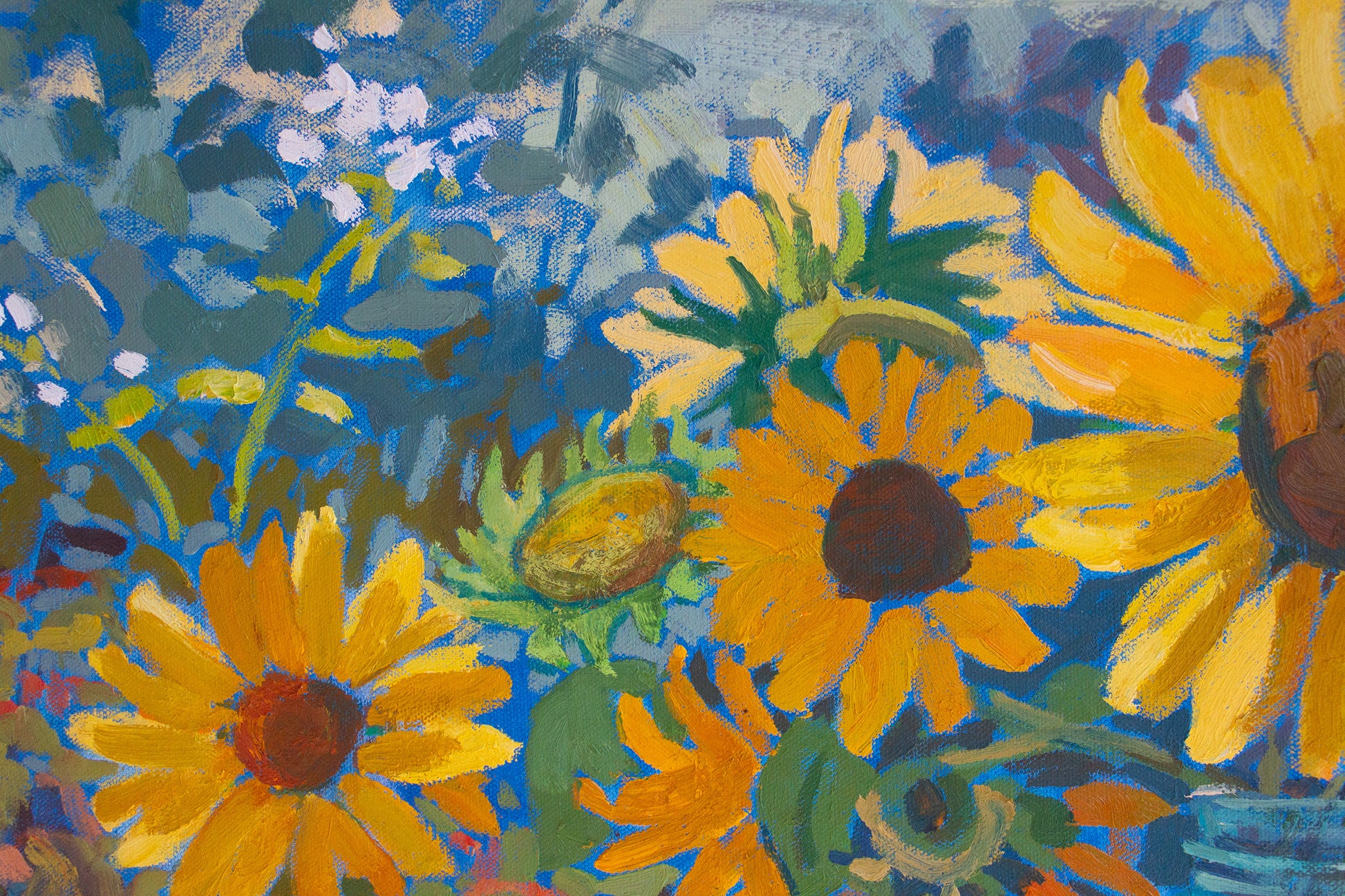 This is an original oil painting on stretched heavyweight cotton canvas.It is signed by Laurel and framed in a 22k hand-leafed frame. With a heavily rubbed finish it has a strong earthy character revealing the lap lines of the gold leaf and the red bole under the leaf. The outside dimensions of the frame are 27" height x 33" width x 1 1/2" depth.